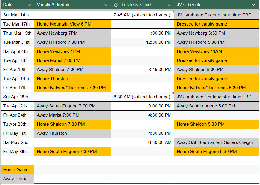 Game & Bus Schedule